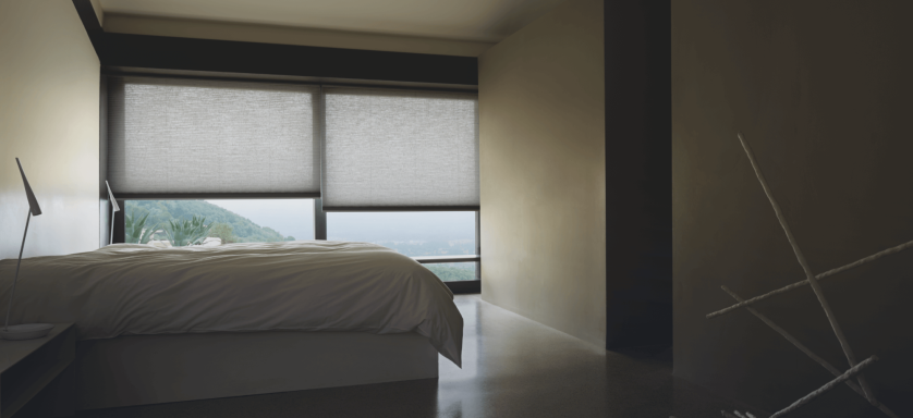 Moderne Innenbeschattung mit großen Fenstern und Verschattungen